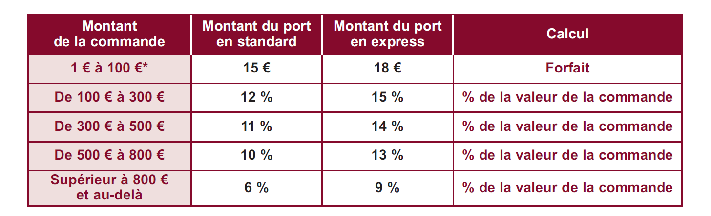 Even with our goods delivered carriage-paid, they travel at the recipient's risk. In case of damage during transport, customary reservations must be made with the carrier by registered letter with acknowledgment of receipt within 48 hours of receiving the products.